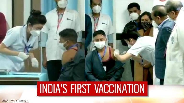 Manish Kumar, a sanitation worker in Delhi, became the first person to receive the COVID-19 vaccine in India after PM Modi flagged off the nationwide vaccination drive on Saturday. Manish Kumar was given the injection at AIIMS in Delhi while Union Health Minister Dr Harsh Vardhan was also present. PM Modi launched the nationwide vaccine drive on Saturday via videoconferencing and congratulated the people of India on getting two Made in India vaccines.