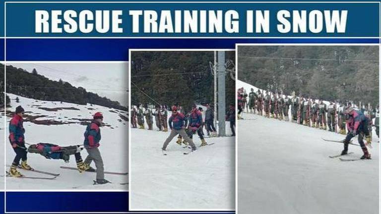 The Indo-Tibetan Border Police conducted a rescue training program in snow conditions at ITBP's Mountaineering and Skiing Institute at Auli in Uttarakhand.