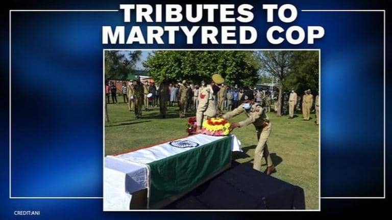 The Awantipora District Police in Jammu and Kashmir held a wreath-laying ceremony to honour Head Constable Anoop Singh who was martyred in a terror attack at Prichoo, Pulwama, on Thursday.