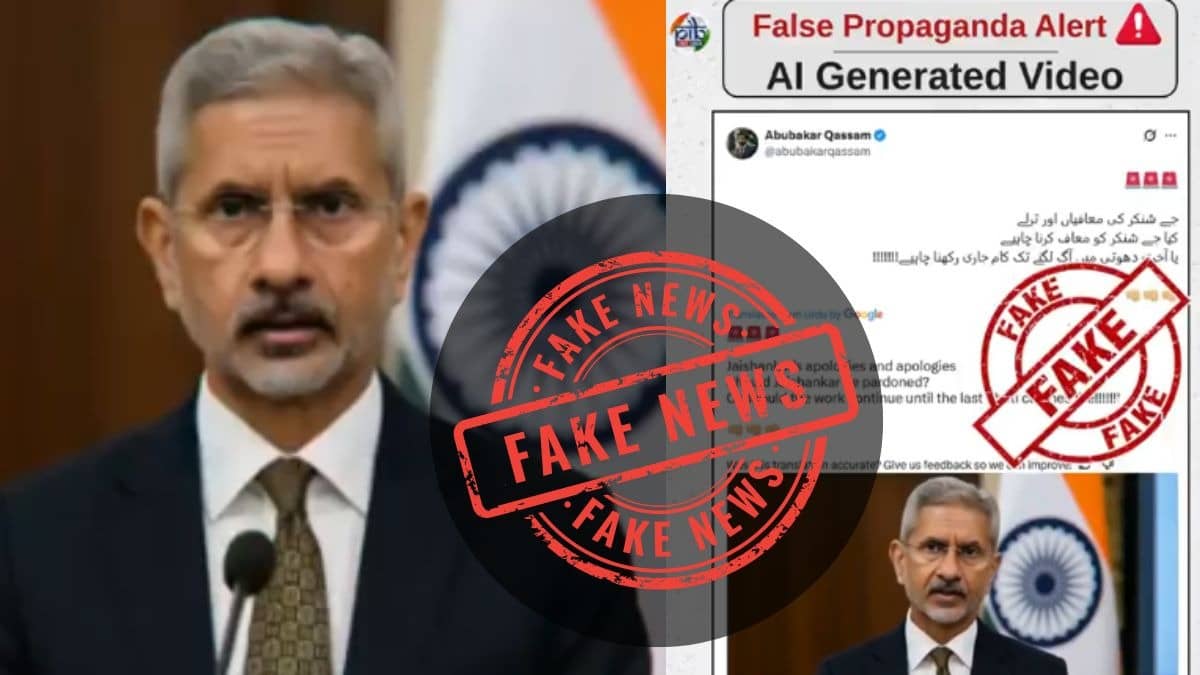 The Press Information Bureau (PIB) fact-checked the viral clip, which had been widely shared by Pakistani social media handles, and confirmed it was AI-generated with a fake voiceover. The video falsely portrayed Jaishankar issuing a public apology following India’s recent military actions under Operation Sindoor.