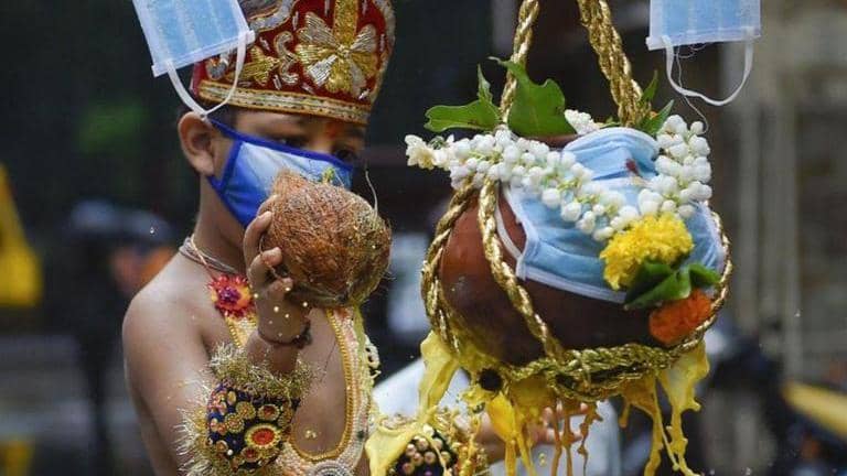 Adhering to the social distancing guidelines, Dahi Handi mandals did not form human pyramids this year.