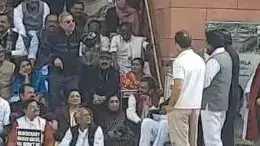 New Delhi: Suspended Trinamool Congress (TMC) MP Kalyan Banerjee mimicked Rajya Sabha Chairman Jagdeep Dhankar on Tuesday outside the Parliament while Congress leader Rahul Gandhi was seen filming the video as the opposition MPs, who had been protesting outside Parliament against the mass suspension from Lok Sabha and Rajya Sabha, burst into laughter.