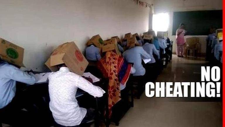 Students of a college in Karnataka were made to sit for their Chemistry exam wearing cardboard boxes that covered their heads to prevent them from cheating.