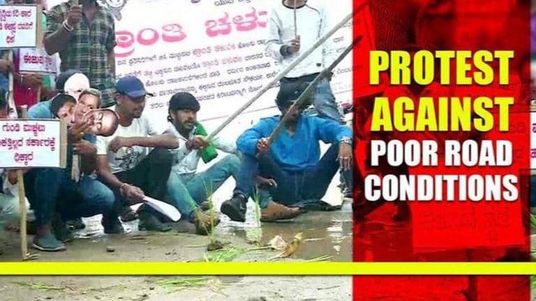 Karnataka students plant saplings in potholes as a form of protest