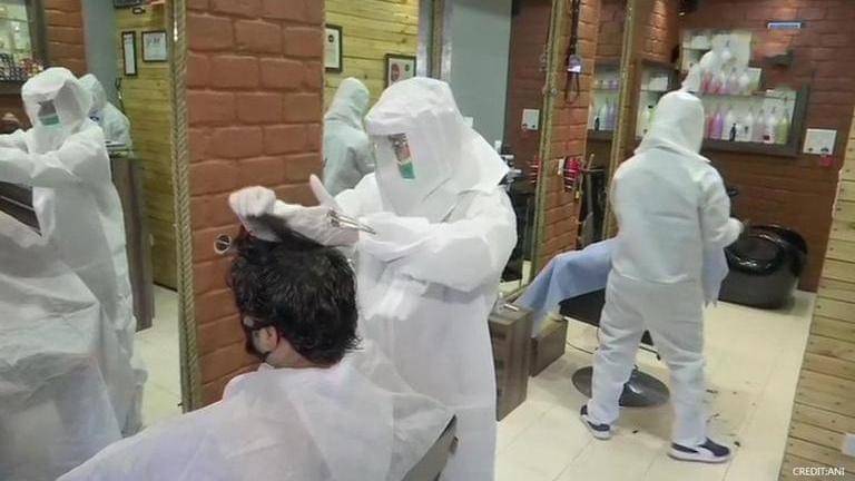 Madhya Pradesh: Salon workers wear PPE suits while giving haircuts amid COVID-19 spread