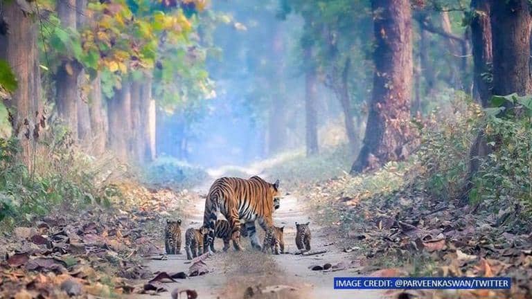 A picture of a tigress and her cubs shared on social media platform Twitter by IFS officer Parveen Kaswan went viral. The "magical" picture shows the tigress walking on a forest trail, surrounded by her five cubs. In the picture's caption, Kaswan called the shot magical, adding that conservation techniques were underway to help increase the count of tigers living in the wild.