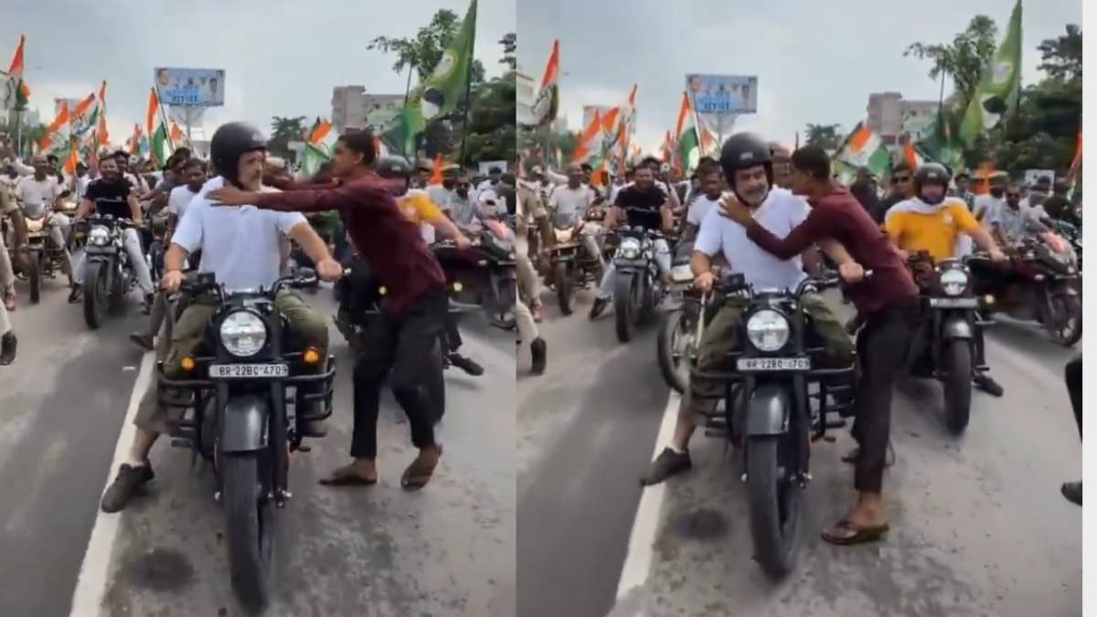 The man managed to cross the security perimeter, hugged and kissed the Leader of Opposition, Rahul Gandhi, while he was riding a bike, leading the 'Voter Adhikar Yatra' along with RJD Leader Tejashwi Yadav.