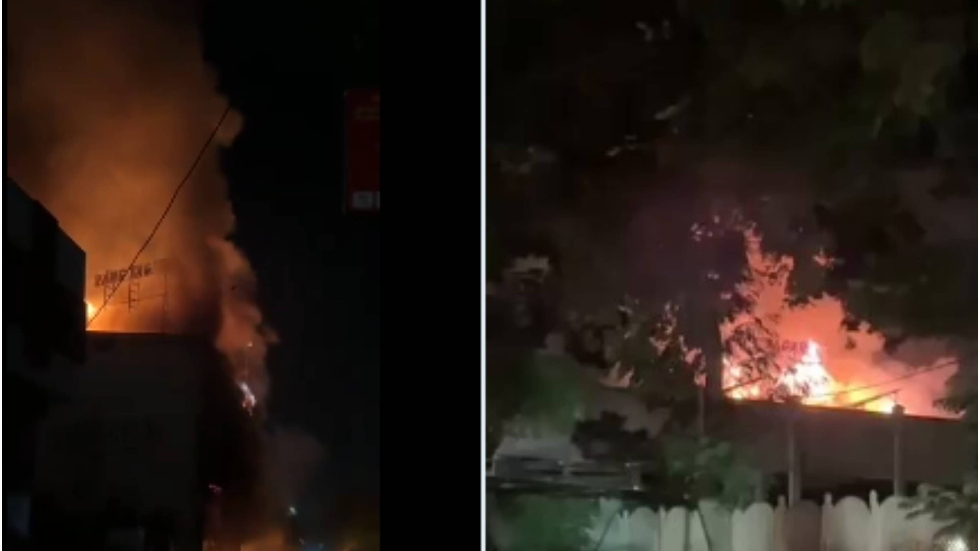 Jodhpur: A massive fire broke out at a paint shop located in front of the Devnagar police station in Jodhpur on Thursday night. Firefighting operations are currently underway.