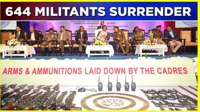 In a major breakthrough, 644 militants of 8 different outfits have laid down their arms in Assam on Thursday. This is the largest surrender in decades, as the last such laying down of arms happened in the early '90s, when Hiteshwar Saikia was the Chief Minister.