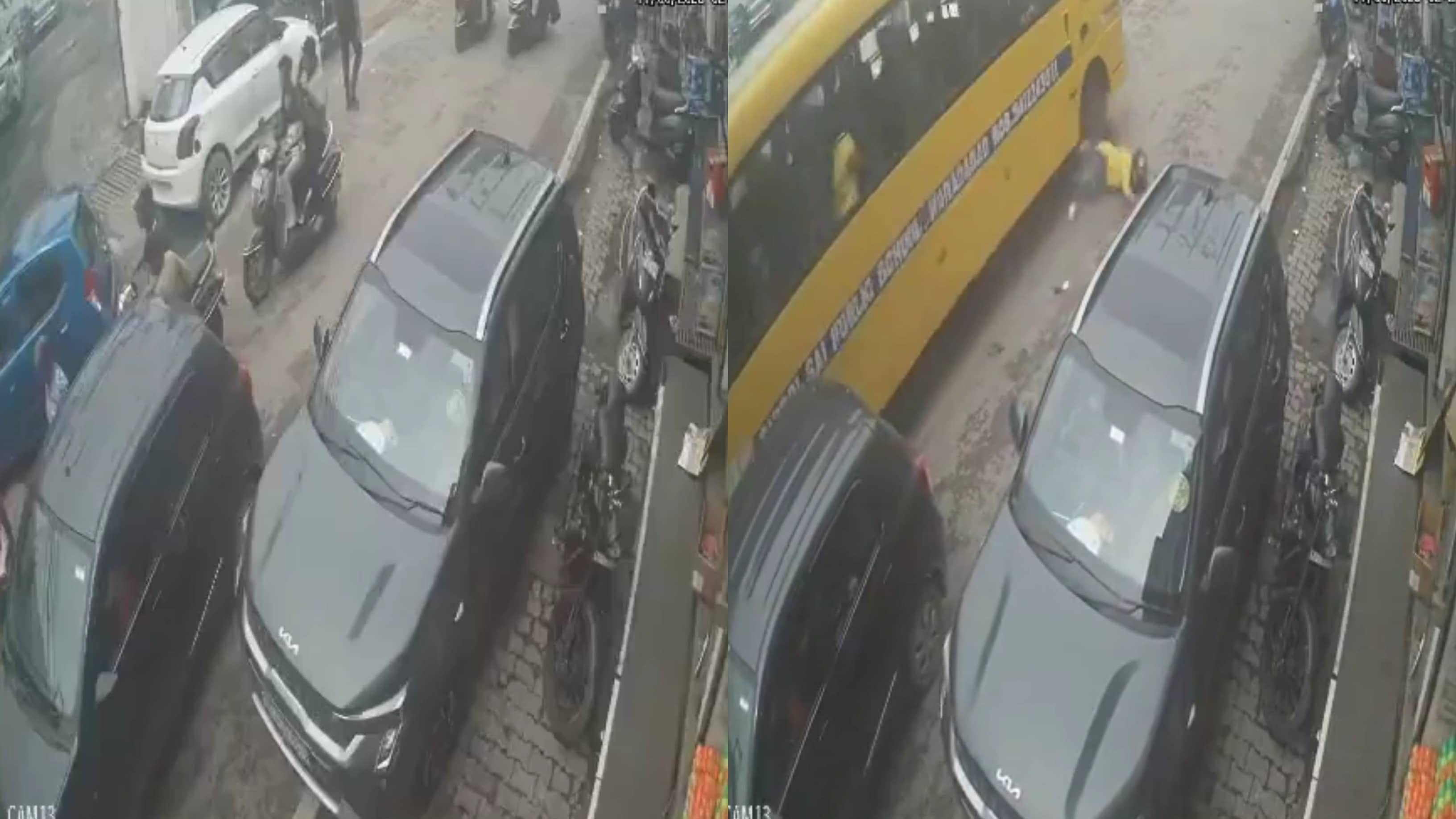 Moradabad: School Bus Hits Woman on Scooter, Chilling CCTV Footage Surfaces