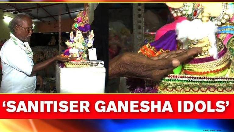 "Since we believe that Lord Ganesha solves all our problems, I have used sanitiser in the weapon of the idol. It symbolises that Lord Ganesha will distance this virus from us. When devotees come to take darshans, the sanitiser is dispensed through the weapon automatically. Despite several efforts by the administration and government, the COVID-19 pandemic is not reducing," he said.