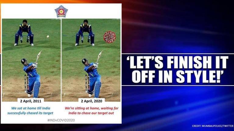 As the war against coronavirus intensifies, Mumbai Police asked the people to do exactly what they did nine years ago when India was playing in the finals of the 2011 World Cup against Sri Lanka - to stay inside until victory is ours. Nine years earlier, then-skipper MS Dhoni hit the ball out of the park to help India end a 28-year drought for the trophy, a magical moment etched forever in the hearts & minds of Indian cricket fans. Using this as an example, Mumbai Police urged the citizens to remain indoors strictly until the country chased out the coronavirus just like how people remained glued to their seats in 2011 until MS Dhoni fulfilled the dreams of 1.3bn with his typical huge swing of the willow.