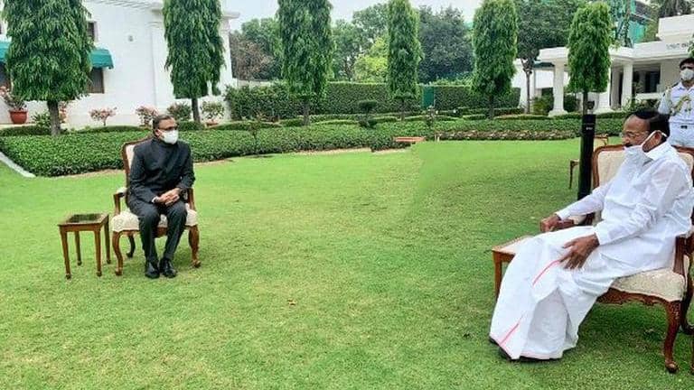 Newly-appointed India's Permanent Representative to the United Nations TS Tirumurti on Wednesday called on Vice-President Venkaiah Naidu at the Upa-Rashtrapati Bhavan. Taking to Twitter, the Secretariat of the VP posted a picture of the two sitting at the Upa-Rashtrapati Bhavan while following the social distancing norms. The Vice President wished Tirumurti a "good successful tenure".