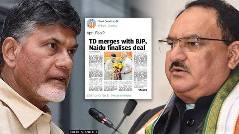 BJP's Andhra Pradesh in-charge Sunil Deodhar shared a picture of the story published and asked if it was an April Fools joke.