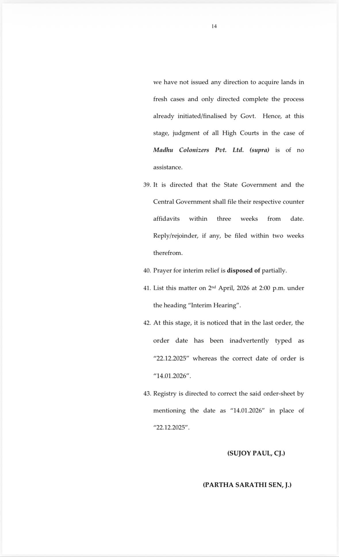 The matter has been listed for further hearing on April 2, 2026.