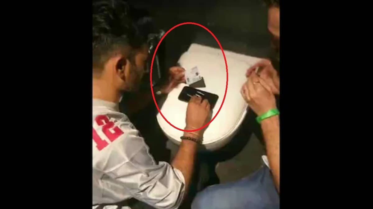 Pune: A video circulating on social media shows two men preparing to snort drugs inside a pub toilet in Pune. The footage, reportedly from a pub on Fergusson College Road (FC Road), showed one of the men using a bank card to divide a white powder substance on a mobile phone screen while holding an identity card in his other hand.