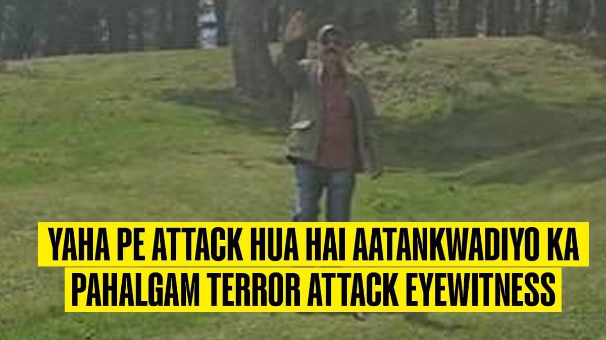 Pahalgam: A disturbing video has emerged showing an eyewitness of the Pahalgam terror attack, who was present when the terrorists were opening fire on innocent civilians saying terrorists have attacked, we narrowly escaped, god will protect us (yaha pe attack hua hai aatankwadiyo ka, hum log baal baal bache hai, parmata raksha karega.)
