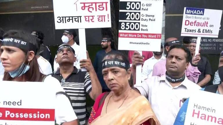 Hundreds of home buyers in Maharashtra's Patra Chawl redevelopment project staged protest against the MHADA over the delayed possession of apartments.
