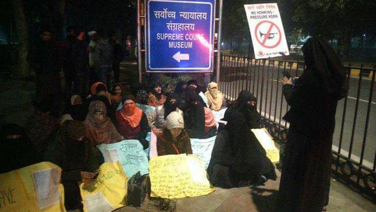 Around 20 women along with children gathered outside the Supreme Court on Tuesday night to protest against the Citizenship (Amendment) Act ahead of the hearing on the contentious law in the apex court.