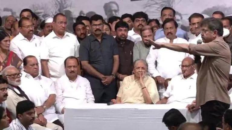 NCP leader and nephew of Sharad Pawar, Ajit Pawar, tried to take control of the chaos by convincing other leaders not to "get emotional" over Pawar's resignation. Ajit's speech, however, showed him pretty desperate to replace Sharad Pawar.