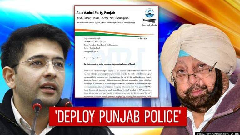 Letter written by AAP's Raghav Chadha read, "This protection to the farmers is absolutely essential in the light of recent attacks on them by engineered and executed by goons from BJP. Please keep in mind that you are still for all intents and purposes the Chief Minister of State of Punjab. You have certain responsibilities towards your people; towards the annadaata of our nation, towards our farmer brothers and sisters."