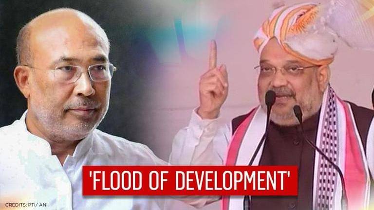 Amit Shah said, "Earlier Maniur used to face a shortage of essentials due to regular blockages, but in the last 3 years, we have not seen any bandh. I want to felicitate Manipur CM N Biren Singh as he has given a new identity to the state."