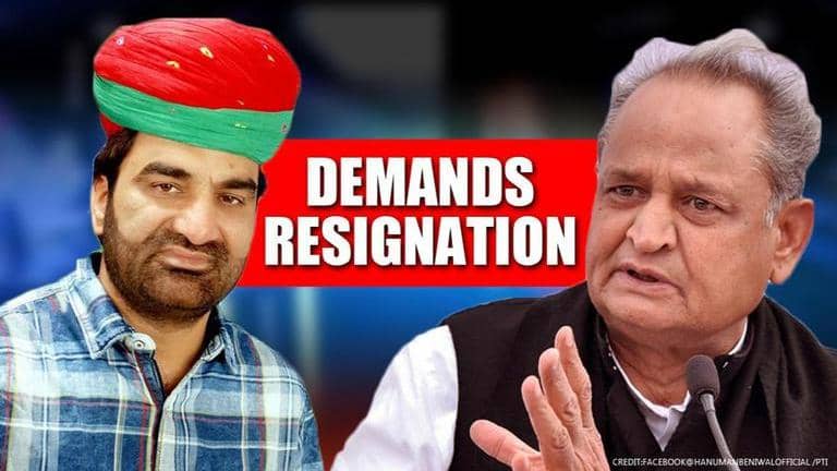 As Rajasthan Chief Minister Ashok Gehlot issued a threat to Governor Kalraj Mishra amid a political crisis in the state, Rashtriya Loktantrik Party (RLP) leader & Nagaur MP Hanuman Beniwal demanded CM's resignation. He said that CM's remark regarding the governor and Raj Bhawan were 'an insult to democratic setup'. Beniwal's party is a constituent of the NDA and has three legislators in Rajasthan.