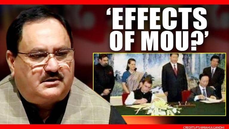 Lashing out at former Congress chief Rahul Gandhi for his continuous attack on Centre over the LAC standoff, BJP chief JP Nadda shared a timeline of Congress' questioning and its alleged association with China. Referring to the picture of Sonia Gandhi and Rahul Gandhi allegedly signing a deal with Chinese CCP, Nadda said that they surrendered India's land to China right after. He then reminded that Rahul had visited the Chinese embassy even as the Doklam crisis unfolded.