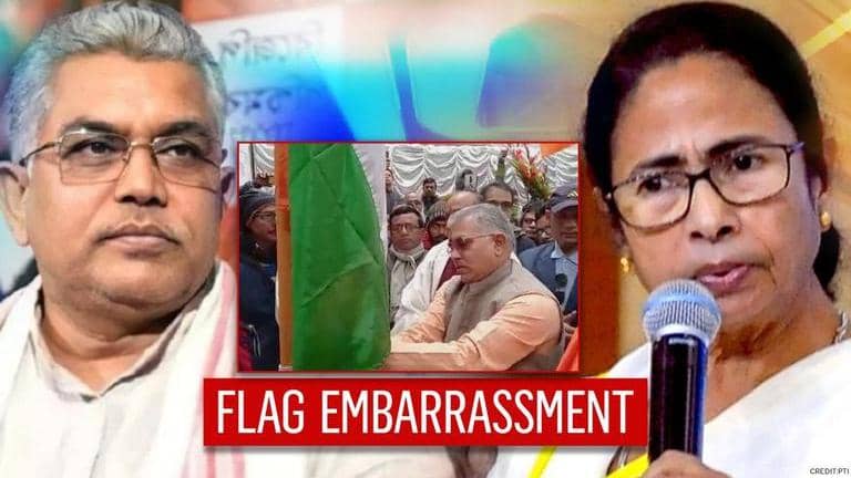 BJP's Dilip Ghosh hoists Tricolour upside-down; concedes embarrassment but TMC pounces