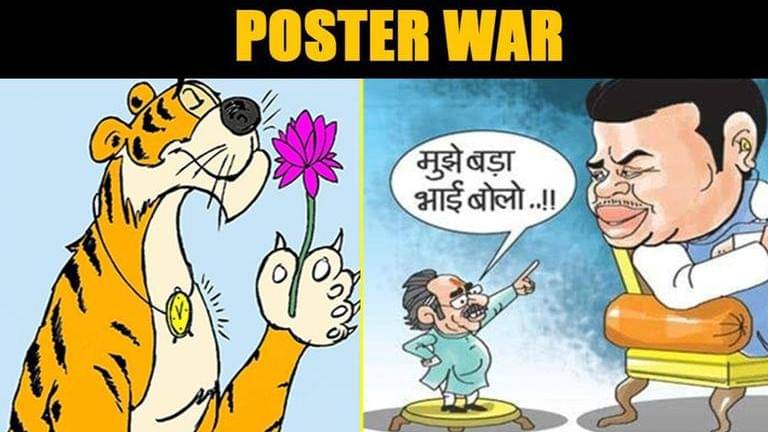 Less than 24 hours after the counting of votes for Maharashtra assembly polls ended, it appears that there's already a power tussle between allies BJP and Shiv Sena who bagged the majority through the Mahayuti (coalition). The power tussle seems to have become an all-blown poster war as the BJP has tweeted an illustration showing its dominance in the alliance. This comes after Sena's provocation where it had shared a poster on social media showing its hold over the BJP owing to the number of seats won by each party. The BJP won 102 seats while the Shiv Sena won 56 seats making the former dependent on the latter to form government in Maharashtra.