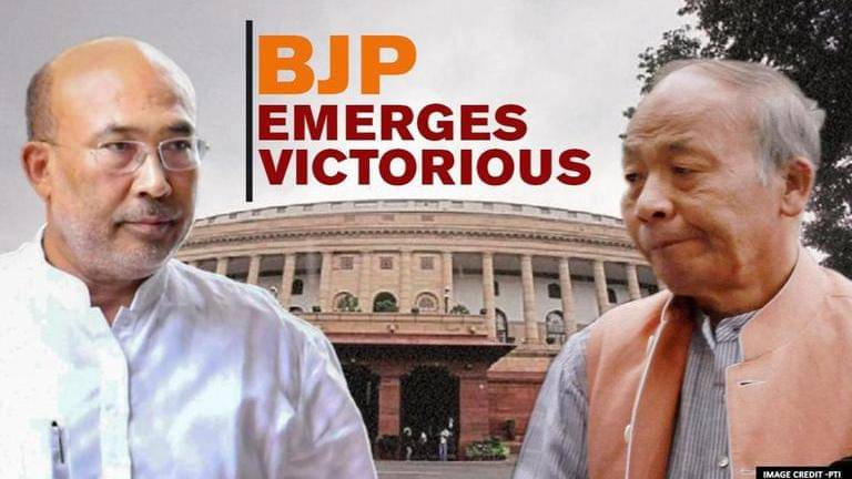 Two days after 9 ruling coalition MLAs withdrew support from the N Biren Singh-led government, BJP on Friday won a high-stakes battle for the Rajya Sabha seat in Manipur. Its candidate Leisamba Sanajaoba- the titular king of Manipur secured 28 votes as against 24 votes received by Congress' nominee T Mangibabu. As per sources, two Congress MLAs cross-voted.