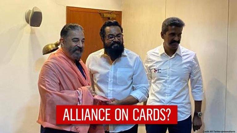All India Samathuva Makkal Katchi founder Sarath Kumar met Makkal Needhi Maiam's (MNM) Kamal Haasan to discuss the possibilities of forming an alliance