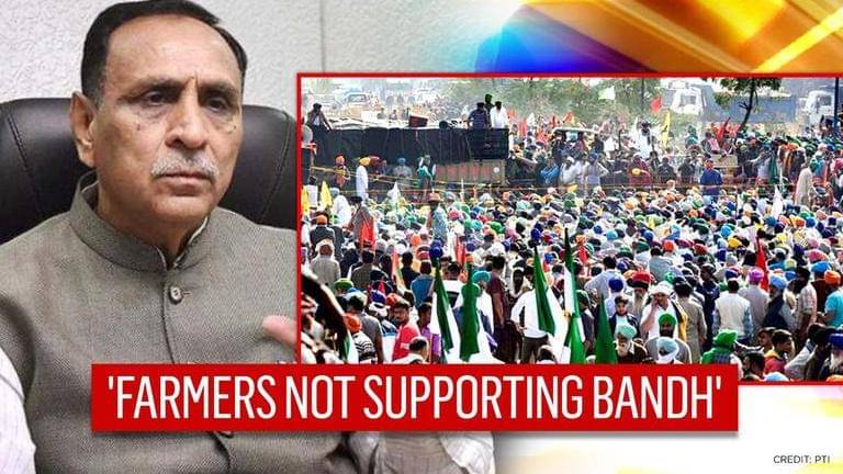 The Bharat Bandh call issued by the farmers shall not be successful in Gujarat, asserted Chief Minister Vijay Rupani. Addressing a press briefing on Monday, Rupani claimed that farmers and Agricultural Produce Market Committees in the state had not extended support to the Bharat Bandh. He lamented that multiple political parties in the country had decided to participate in the shutdown on Tuesday.