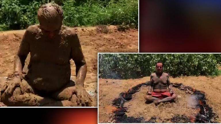 Caked in mud, BJP MP Jaunapuria performs Yoga in ring of fire on International Yoga Day