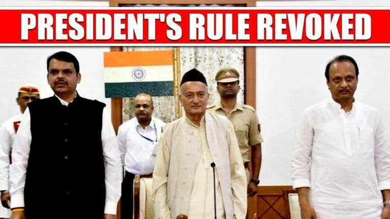 President Ram Nath Kovind released a statement confirming that the President's rule has been revoked in the state, after BJP-NCP formed a govt staking claim.