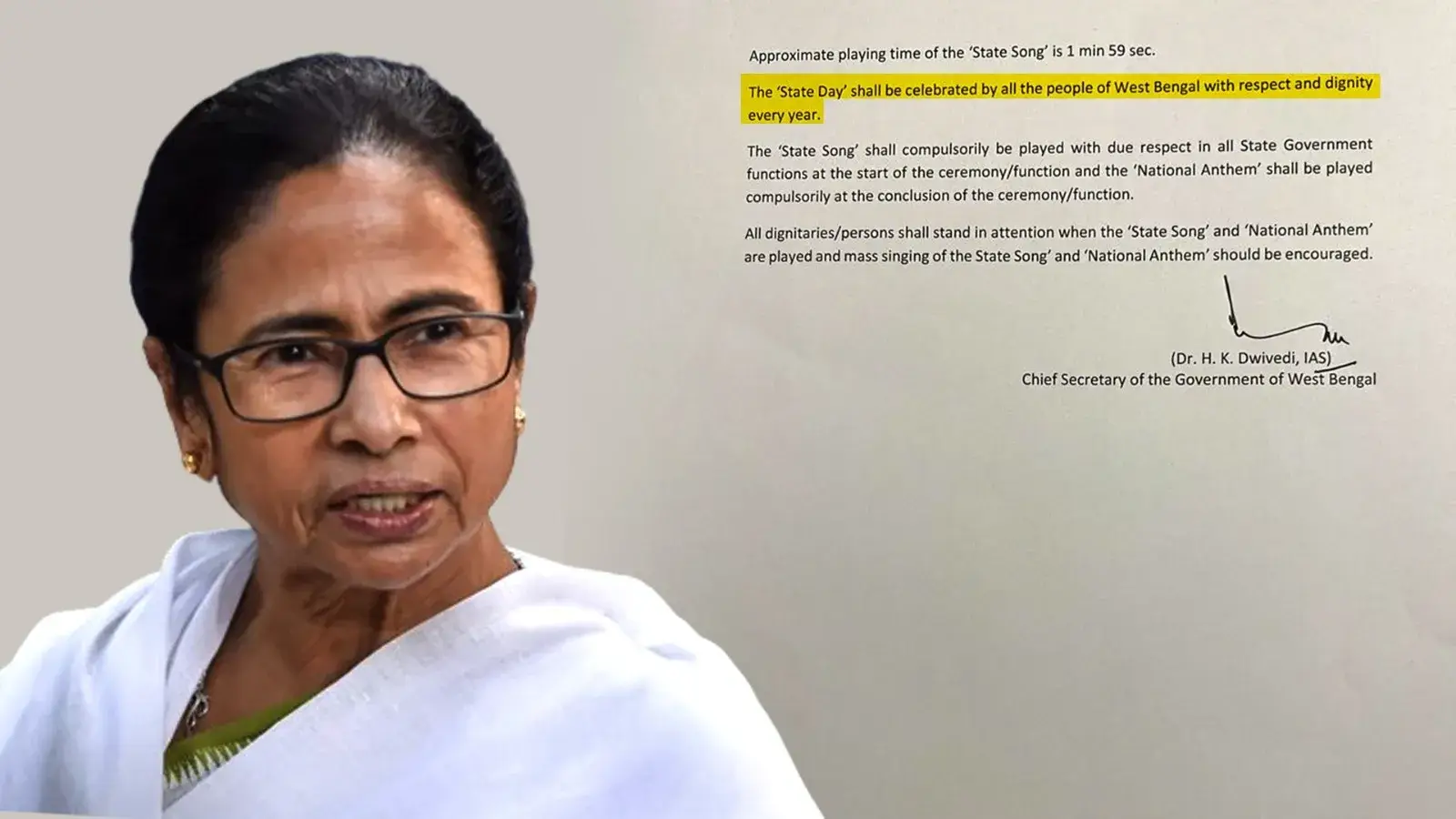 The guidelines state that the state song must be played with due respect at the beginning of all state government functions. Furthermore, it mandates the compulsory playing of the 'National Anthem' at the conclusion of such events.