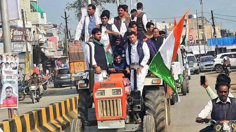 The leaders reached Nasrullaganj along with Congress workers in tractors and demanded that the Centre withdraw the new farm laws immediately.