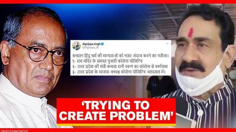 Hitting out at Congress leader Digvijaya Singh over his insensitive tweet, Madhya Pradesh Home Minister Narottam Mishra accused the former of creating problems. Earlier in the day, Digvijaya Singh put out a deeply insensitive tweet, hitting out at the priests of Ayodhya and the BJP for 'ignoring the rules of Sanatan dharma.