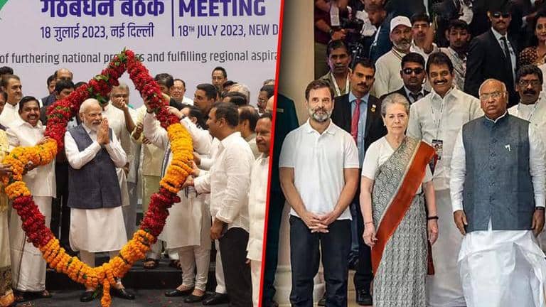 The political heat in the country rose several notches on Tuesday as the ruling alliance's parties and the Opposition parties flexed their muscles. The two biggest alliances held grand meetings involving dozens of parties to chalk out strategies to win the 2024 Lok Sabha elections.