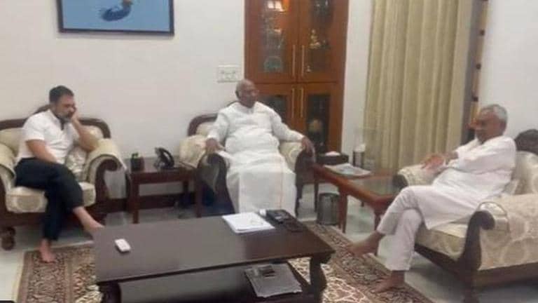 Bihar CM Nitish Kumar on Monday reached Congress National President Mallikarjun Kharge's residence in Delhi, where along with Kharge, he held a meeting with Congress leader Rahul Gandhi. According to the reports, all the three leaders discussed strengthening the opposition's unity in the country.