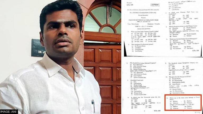 Tamil Nadu BJP chief K Annamalai trained guns at the ruling DMK over the controversial caste-based question asked to MA students at Periyar University