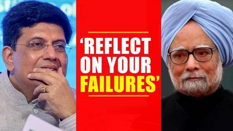 Minutes after former PM Manmohan Singh targeted the BJP government over the economy, Union Minister Piyush Goyal said that he should reflect on his failures
