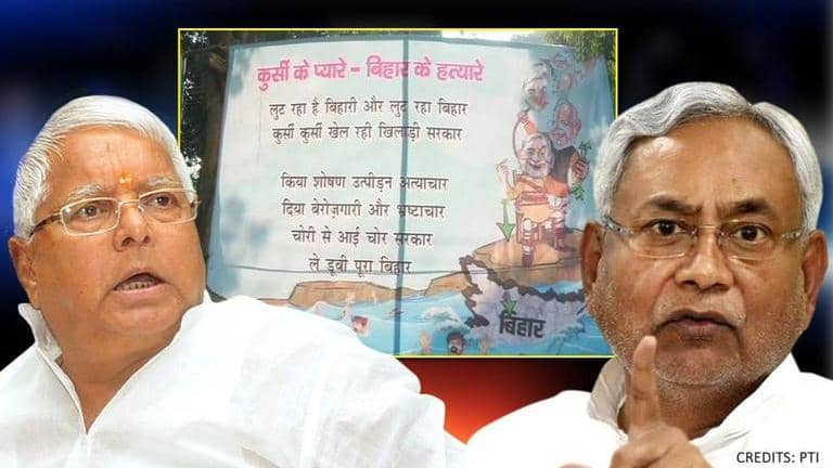 It's accompanied with a six-line poem titled 'kursi ke pyare, Bihar ke hatyare' (interested in only power, they are the killers of Bihar). "Lut raha hai Bihari aur lut raha hai Bihar. Kursi kursi khel rahi khiladi sarkaar. Kiya shoshan, uthpeedhan atyachaar, diya berozgaari aur brashtachaar. Chori se aayi chor sarkaar. Le doobi poora Bihar."