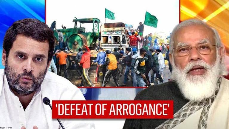 Weighing in on the Centre's move to permit protesting farmers entry into Delhi, former Congress president Rahul Gandhi lashed out at Prime Minister Narendra Modi. Writing on Twitter, Gandhi reminded the PM that arrogance is always defeated when it clashes with the truth. According to the Wayanad MP, no government can stop the farmers whom he claimed were fighting a battle for the truth. Moreover, he asserted that the Centre will have to accept all their demands and repeal the 'black laws'- a reference to the three farm laws cleared by the Parliament. Gandhi maintained that this was just the beginning of the fight.