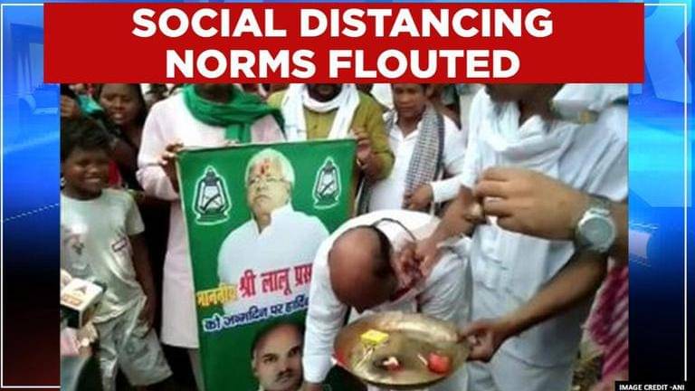 On June 11, RJD workers flouted social distancing norms during a food distribution programme on the occasion of party supremo Lalu Prasad Yadav's 73rd birthday.