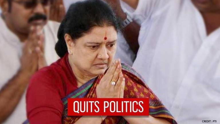 In a shocking twist in poll-bound Tamil Nadu, ex-AIADMK general secretary VK Sasikala quit politics on Wednesday. Issuing a statement, Sasikala urged the AIADMK cadre to unite ahead of the polls and fight the DMK to 'continue Amma's AIADMK rule in Tamil Nadu for 100 years. Thanking the cadres for the love they showered on her, she announced that she will quit politics and will always pray to Amma and God to keep her golden rule alive. The 234-seat Tamil Nadu Assembly is set to got to polls on April 6, with results to be declared on May 2.