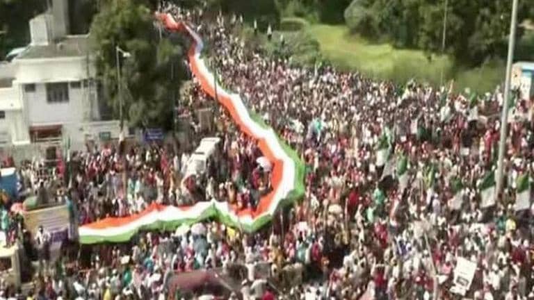 The crowds held the Indian flag over their heads and raised slogans while heading towards Tamil Nadu Governor Banwarilal Purohit’s house.