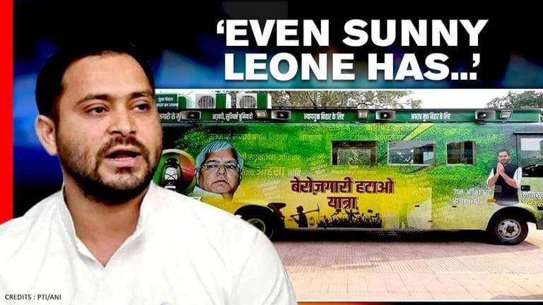 Tejashwi cites Sunny Leone example to refute forgery claim against his Berozgari Yatra bus