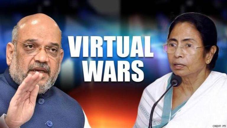 As public gatherings and rallies are not permitted due to the coronavirus, political parties have taken their verbal wars on social media. Union Home Minister Amit Shah presided over his first-ever virtual 'Jan sabha' for Bengal on Tuesday, in which he blazed out all guns at Chief Minister Mamata Banerjee, with an array of allegations. Virtual allegations were met by virtual retaliation by the Trinamool Congress, soon after the speech ended.