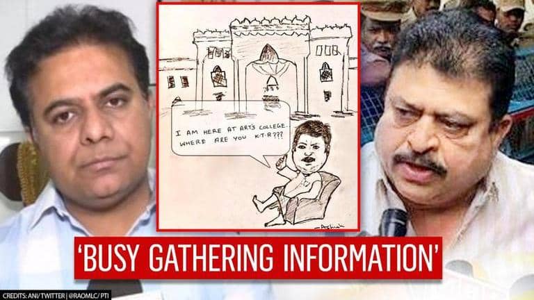 Not only this, but the BJP's Ramchander Rao also shared an illustration in which, he is sitting at the college and waiting for KTR. The illustration also had a message that read, "I am here at Art's college. Where are you KTR?" along with a hashtag #WhereisKTR.